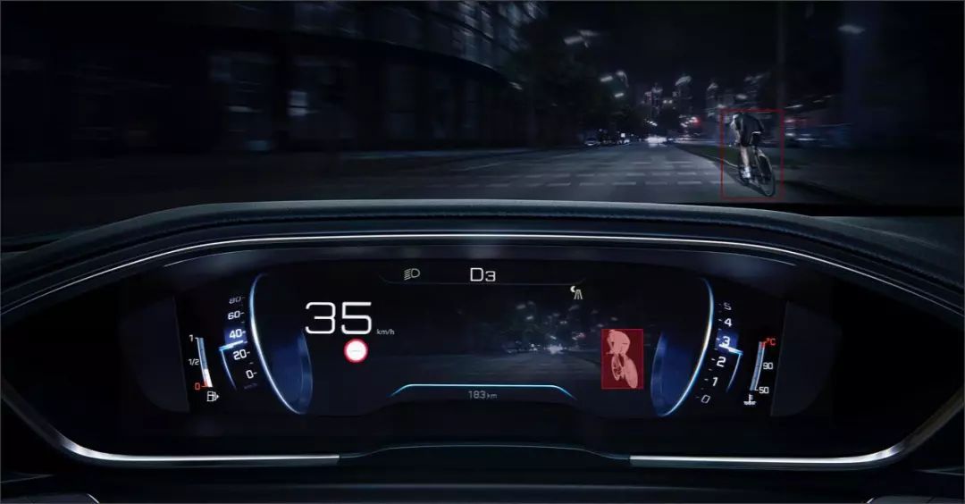 通过位于车辆前端的红外摄像头,探测到15-150m距离范围内的人或者动物,并通过12.3英寸的数字仪表盘实时反馈潜在危险,提升夜间行驶安全。