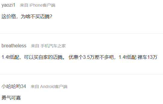说到品牌力,家用车里,大众应该就是最强的那一档。不过不得不提下一汽大众最近发布的“第三品牌”捷达,定位于低端市场,其中有种“品牌向下”的趋势让人为之担心不已,一个挺“高级”的品牌,说不定哪天品牌溢价就成负了,这一招,有点昏。